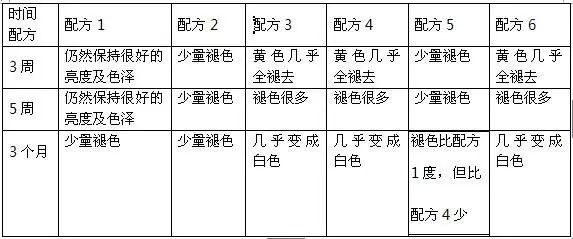 實驗過程:按上述6個配方各做5公斤粉末涂料樣品,并在黑鐵管上進行涂塑,每個配方涂塑兩個樣件,涂塑工藝都是200℃預熱30min,180℃固化30min。將做好的涂塑管件掛在露天空曠位置,過幾天翻轉一次,并將管件懸掛位置互換。觀察三個月,將實驗結果列于表4中。